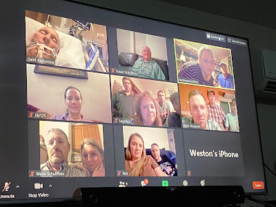 On September 21st Uncle Vaughn went to the hospital because he wasn't feeling well. While he was there he had a heart attack from his blood sugars being over 600. They were able to revive him and they life-flighted him to Boise. There he was put on a ventilator and an induced coma. When they brought him out of the coma they discovered that the heart attack caused a stroke and the right side of his body was paralyzed including no sight in his right eye. On Friday, September 25th the family was able to have a zoom call and finally see him. It was so nice that they invited dad to be included. They were able to talk to him and Tommy gave a beautiful prayer. The next morning the doctor was able to talk to Uncle Vaughn and he was able to tell the doctor that he wanted to go home. The doctor said his heart wasn't strong enough but he still wanted to go home. The doctor only gave him a few days to live. So Saturday they brought him home to be with his family. That night they invited Mom and Dad to see him.