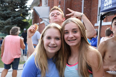 On Sunday, August 14th we had a big Talbot dinner. We decided to have it at my parent's house since their house is much bigger than ours and they have a wonderful yard to entertain. The kids had a lot of fun going down the slip n slide. They also enjoyed playing basketball, cornhole, swinging, jumping on the trampoline, and riding little scooters. All of Nanette's kids came to go camping at Hi-Cliffs so it was fun to all get together. Scott smoked some pork and we had tacos. He also made two different spicy sauces and I made a chocolate Texas sheet cake and a peanut butter one. I was happy they both turned out so good.